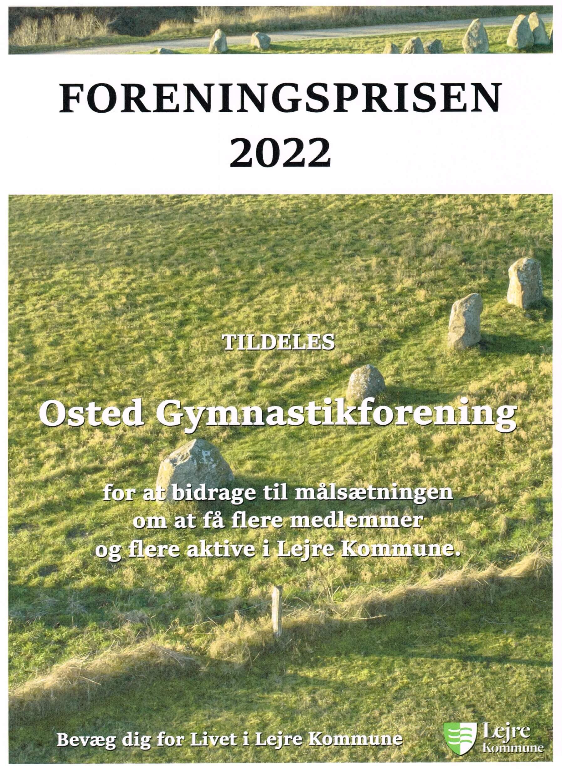 Ved årets fejring d.30.9.22 af det frivillige arbejde i Lejre kommune fik Osted Gymnastikforening overrakt foreningsprisen.